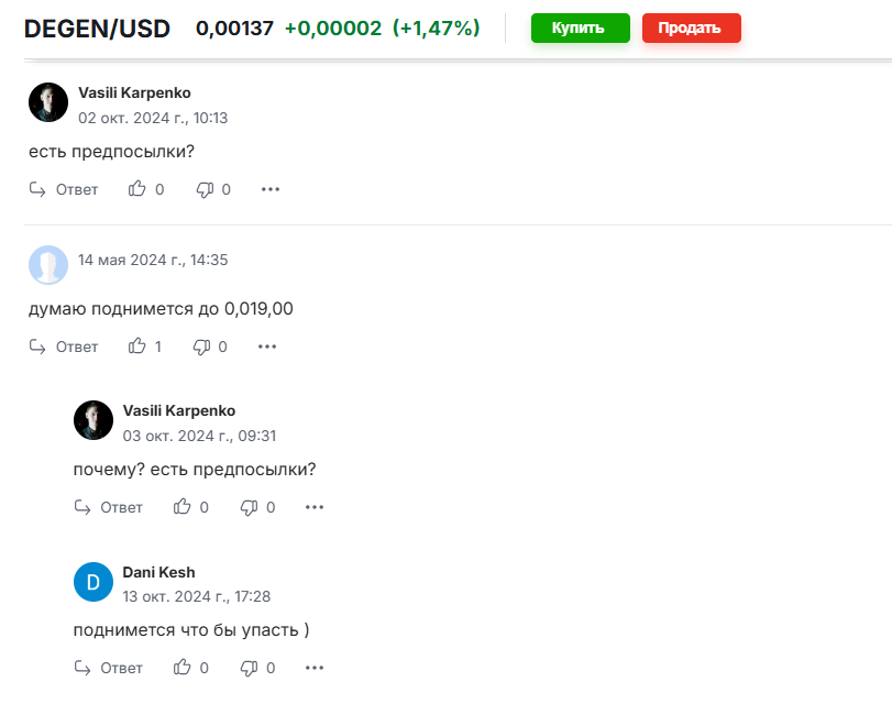 Инвесторы предпочли перевести внимание на другие токены и монеты, а не следить за Degen дальше в надежде заработать. Положительных отзывов с подробной аналитикой и верифицированной отчетностью по сделкам в интернете нет.