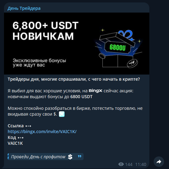 Зарабатывает создатель тг-канала, скорее всего, на реферальных ссылках на биржи. В этом, к слову, нет ничего плохого: мы проверили сайты и они не фишинговые.