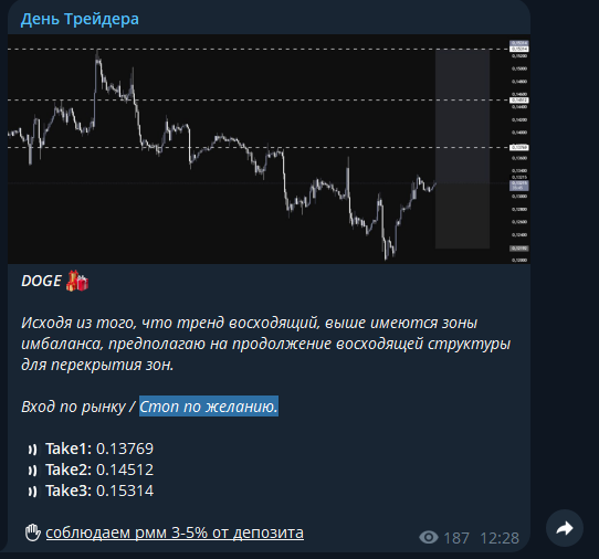 День трейдера тг канал – это проект о заработке на криптовалютных биржах, который ведет анонимный пользователь. Автор представляется экспертом с большим опытом и утверждает, что стабильно торгует в плюс. В своих закрытых сообществах инвестор обещает сигналы, благодаря которым можно якобы увеличить депозит в несколько раз за неделю. Далее в статье расскажем подробнее о данном персонаже и выясним, заслуживает его деятельность внимания или нет.