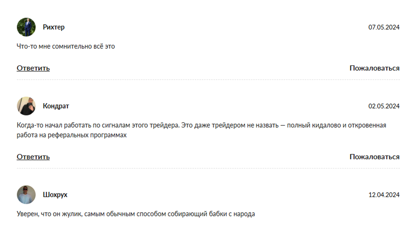 Пользователи утверждают, что канал является скамом, а его владелец – мошенник. Доверять сигналам мужчины нельзя.