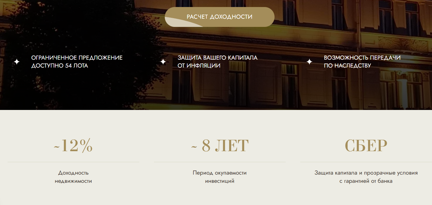 В связи с этим переходим к анализу другого сайта Domina Invest, рекламирующего инвестиции в номера в центре Санкт-Петербурга. Окупаемость недвижимости определяется как восемь лет, но это не экспертное заключение – в открытом доступе нет ни анализа рынка, ни профессиональных экономических прогнозов и пр. На главной странице сайта уточняется:
