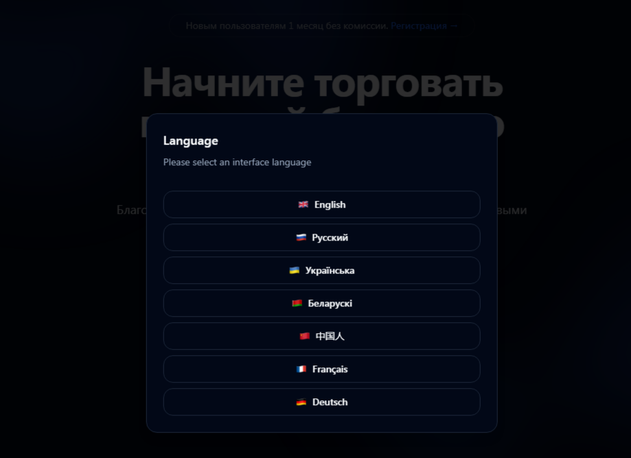 Единственное, что пишут авторы, это что на их площадке можно безопасно торговать и прилично зарабатывать. Также своим новыми клиентам они обещают один месяц работы без комиссии.