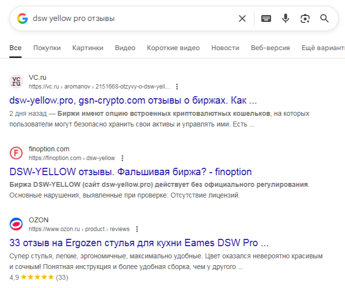 По результатам нашего расследования мы пришли к итогу, что с крипта-биржей Dsw Yellow Pro сотрудничать не нужно, так как это фальшивая организация, которая не оказывает услуги трейдинга. Плюс, этот источник является одним из множества лохотронов, которые работают по шаблону.