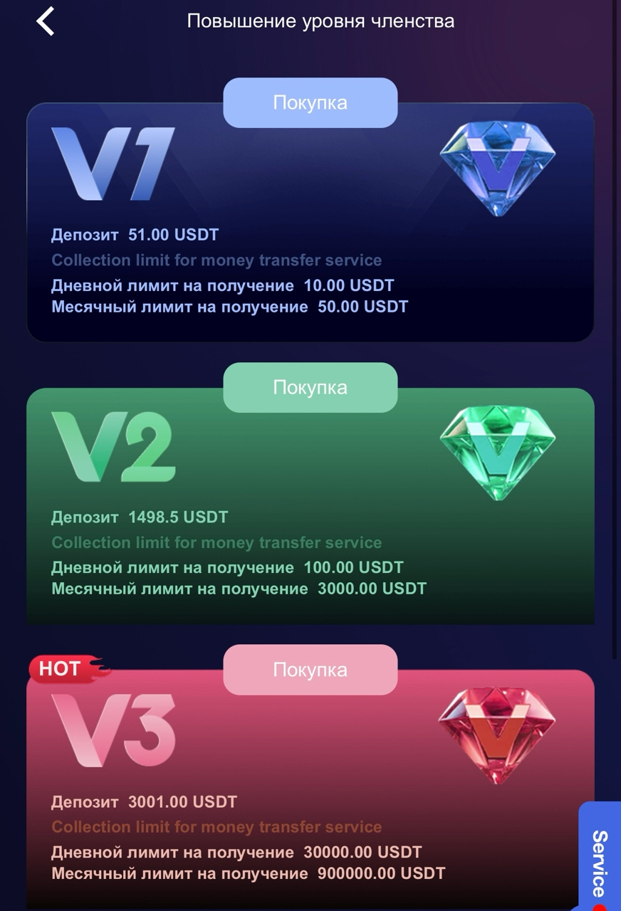 Повысить уровень членства можно попросту внеся на свой счет деньги. На первом уровне это 51 доллар, на 6-м – 99 998. Но насколько реально работает данная система, остается только догадываться. Фактически, пользователь не получает ровным счетом никаких гарантий.