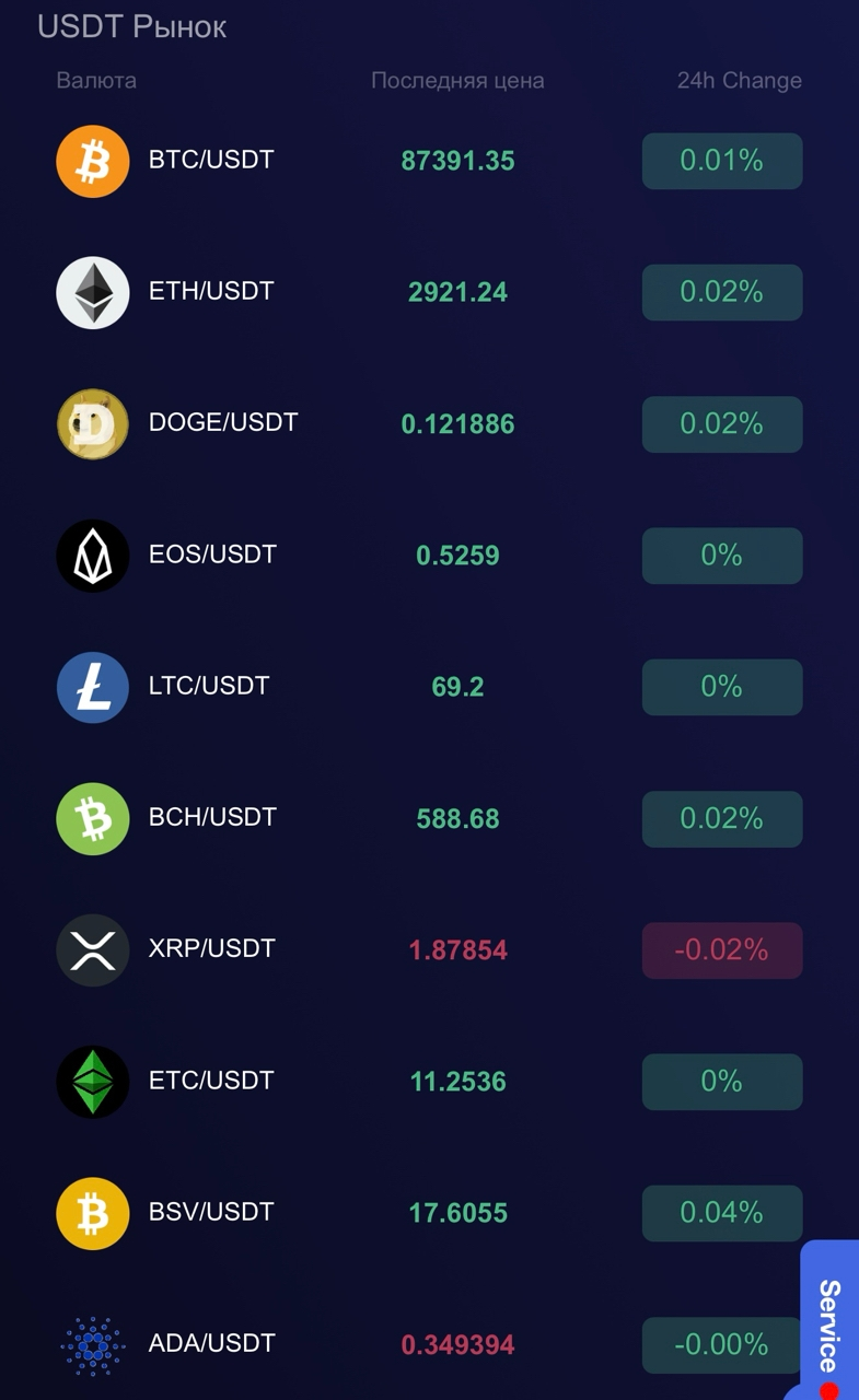 Для инвестиций на сайте Eia сс крипта является единственным активом. Трейдерам доступен довольно внушительный перечень криптопар в формате стейбл коин – USDT. Котировки пар с самыми большими объемами торгов отображаются на главной странице. Но о комиссиях и типе терминала информации нет.