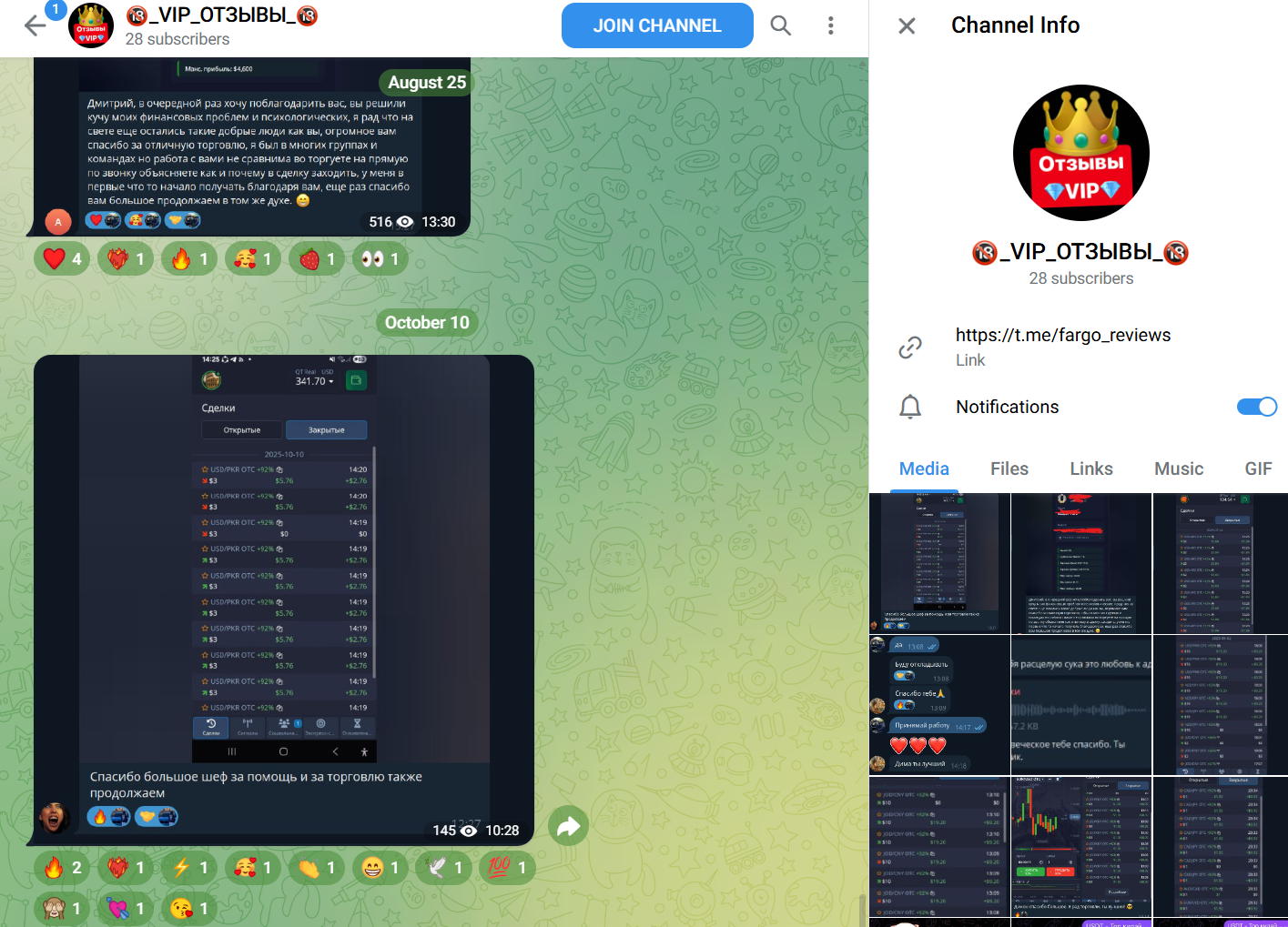 Уже вступали в приватный канал Fargo Trader и торговали по их сигналам? Поделитесь опытом ниже.