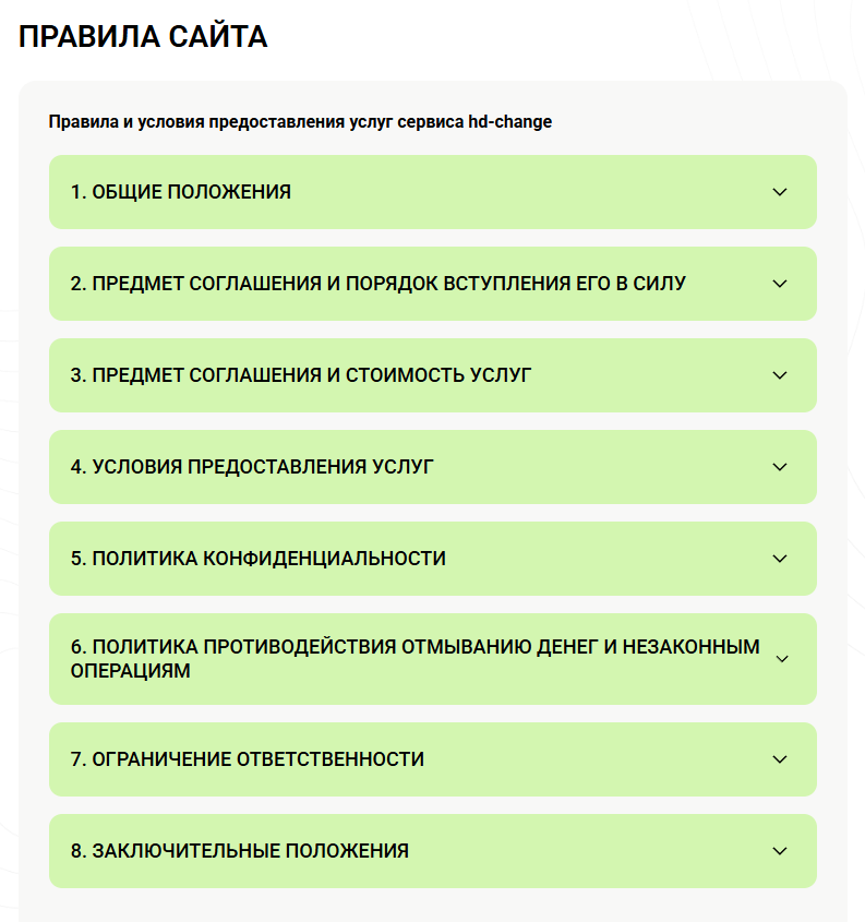 Полные правила работы на площадке Hd Change находятся в открытом доступе на сайте. Никаких подводных камней в тексте документов мы не обнаружили.