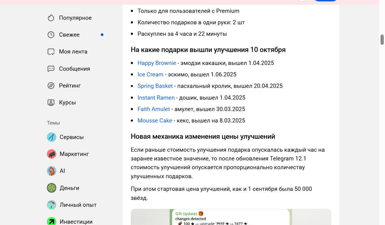 Несмотря на то, что Ice Cream разработан и выпущен на платформе с мировым именем, не следует ожидать получения крупной прибыли. Рынок подарков только начинает свою активность и на данный момент больше похож на казино, чем на полноценную биржу. Расскажите в комментариях, как вы относитесь к подаркам в Телеграме и что думаете об «Айс Крим».