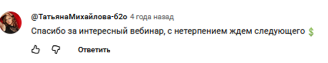 Независимые комментарии о вебинарах Доганова удалось найти только на Ютуб. Но обсуждения не слишком активные, хотя зрители и отмечают хорошую подачу материала. Некоторые интересуются, где можно пройти обучение по теме вебинара.