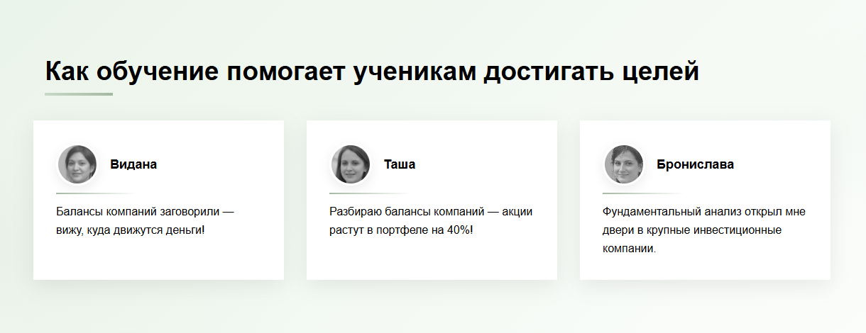 Привлекают клиентов они не гарантиями / примерами курсов, а просто снижением оценки других курсов. По их мнению другие предприниматели учат обращать внимание на отчеты компаний, фундаментальный анализ, но не связывать их с графиком, но непонятно почему они так решили. Статистики по их стратегии нет, связаться с клиентами невозможно.