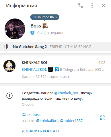 Обзор на новостной телеграмм-канал Khinkali Boi: отзывы о контенте проекта @Khinkali_Boi и основная информация о пользователе @fakeboss