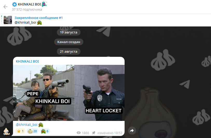 Канал Khinkali Boi зарегистрирован в Telegram в августе 2025 года, а на момент подготовки обзора он существует около месяца. За этот период проект смог привлечь аудиторию в 37 572 человека. Неизвестно, кем был создан этот канал, личности администраторов сохранены в анонимности.