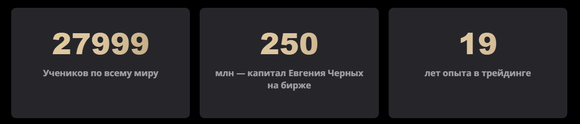 Евгений Черных позиционирует себя как инвестора с опытом. Начал работать на рынках в 2006 году. За это время успел заработать максимум 400% годовых. Создал сетку Telegram-проектов и закрытый клуб.