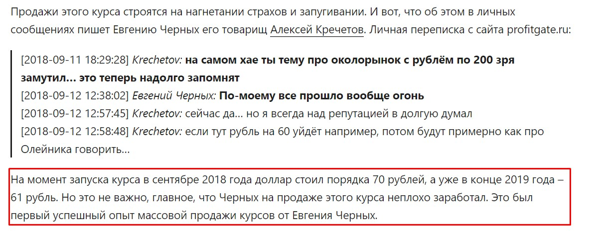 Старые записи хорошо показывают, как Черных относится к аудитории. Если его прогноз не сбывается, виноват кто-то другой. Какие компенсации убытков, какая репутация. Все в порядке.
