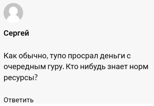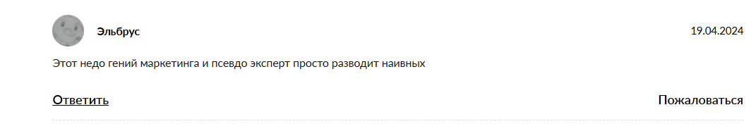Другой пользователь утверждает, что проект является разводом на финансы для наивных, а автор на самом деле – псевдо-эксперт.