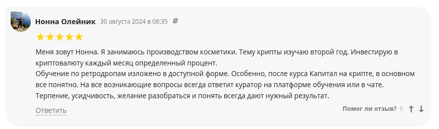 Ситуация с репутацией проекта неоднозначная. Если смотреть на подконтрольные площадки и агрегаторы курсов, то отзывы об Александре и Ксении Кожевниковых выглядят просто идеальными. Студенты пишут об «удобной платформе», «доступном языке» и «поддержке кураторов». Однако в этих одах почти нет конкретики: никто не выкладывает верифицированные стейтменты с бирж и не показывает реальную прибыль после обучения.