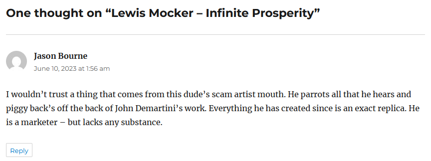 Отзывы о своих курсах Льюис публикует на своем сайте сам, поэтому руководствоваться ими нецелесообразно. Более ценны мнения, оставленные на сторонних независимых площадках. Но в русскоязычном сегменте их нет, а за рубежом найден всего один комментарий. Его автор относится к наставнику скептически и считает, что не стоит учиться у него.