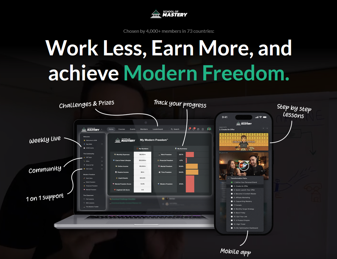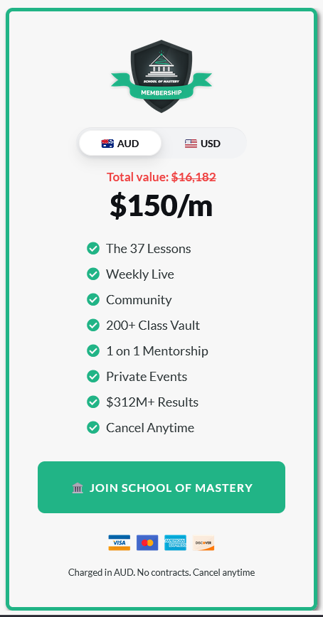 Здесь с громкими обещаниями и внушительной статистикой, которая ничем не верифицирована, предлагают приобрести разные уроки и курсы. Однако входят они в единую подписку за $150 в месяц.