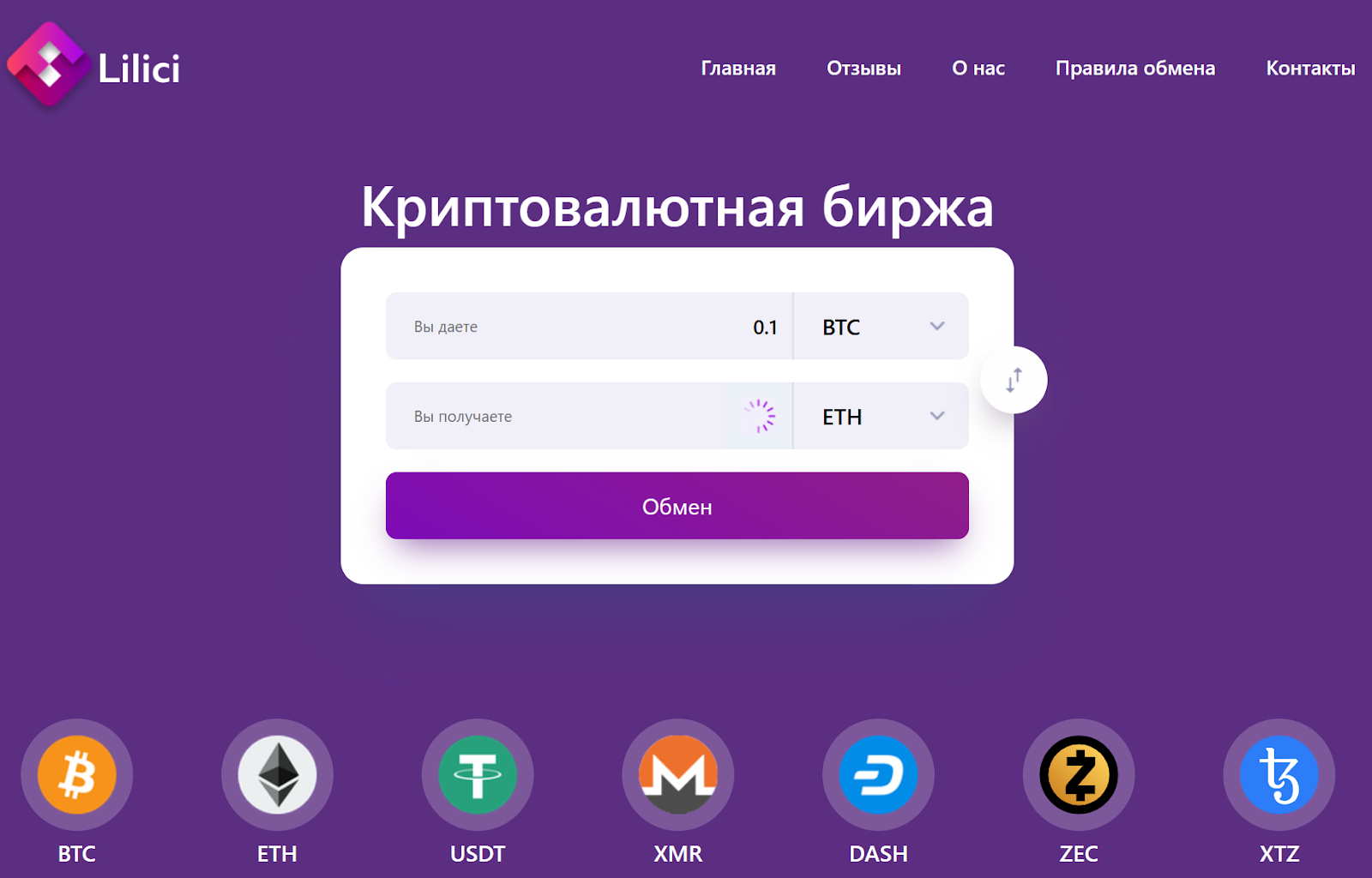 Lilici предоставляет услуги по обмену цифровых валют, таких как: