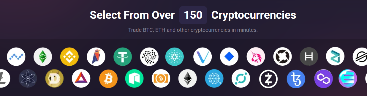 Полный список доступных токенов мы не нашли, но заявляется, что их более 150. Судя по логотипам на главной странице, среди монет есть USDT, BTC, BNB и т.д.