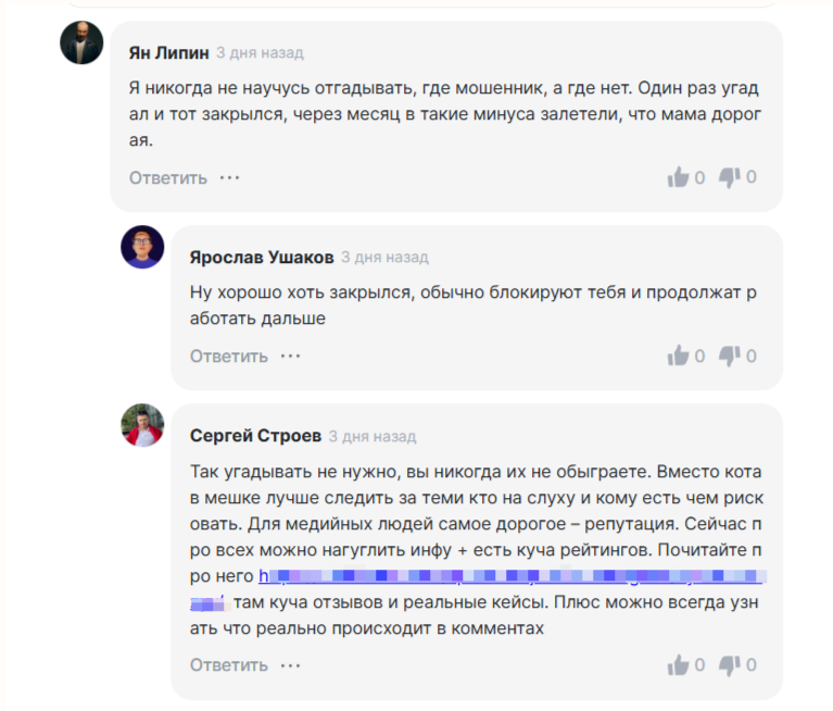 - закрытые комментарии и отсутствие верифицированной статистики;