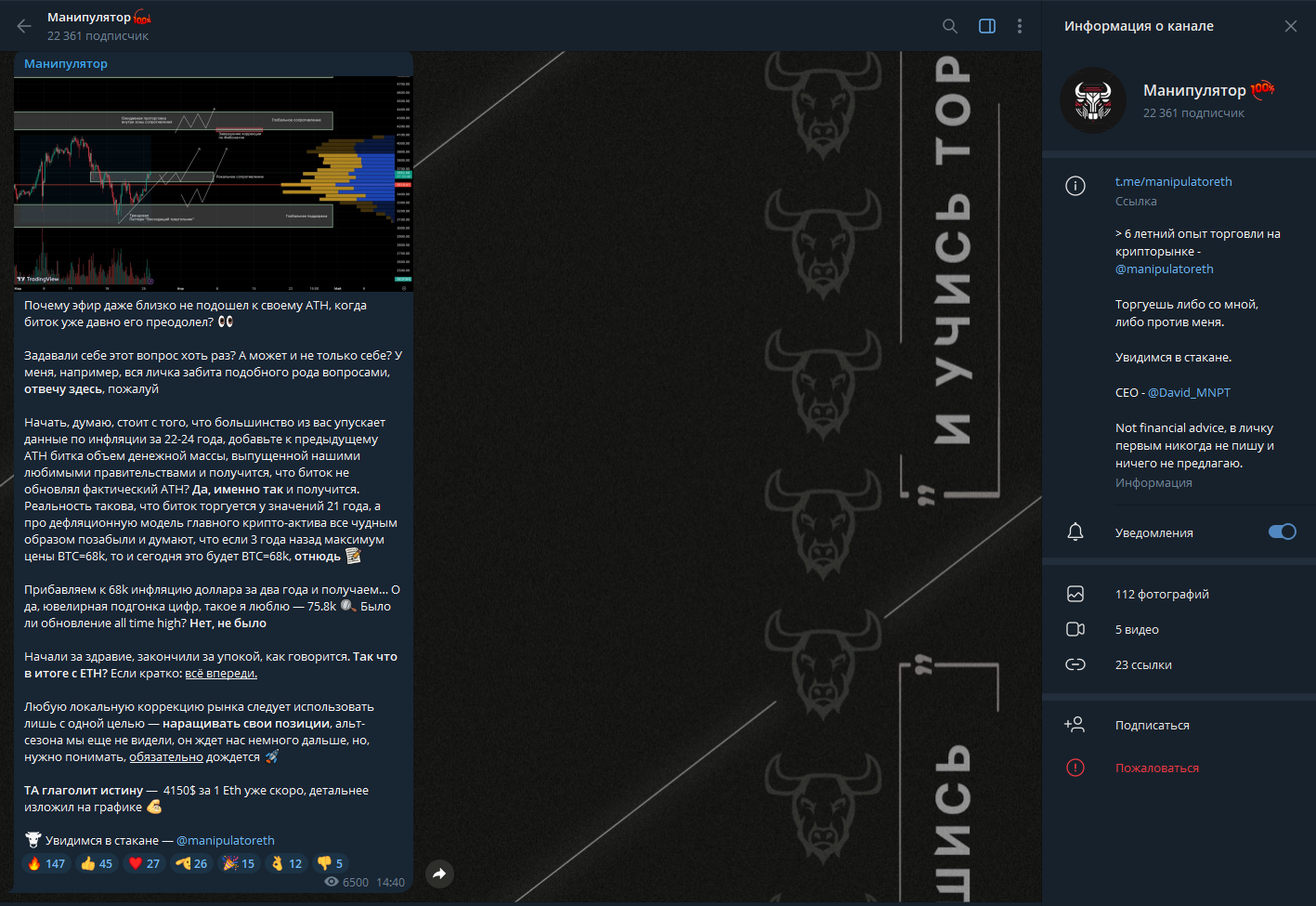 Телеграмм канал Манипулятор выглядит довольно сомнительным и вызывает больше вопросов, чем доверия. Для получения сигналов можно подобрать куда более прозрачные и проверенные источники. На это указывает сразу несколько факторов: