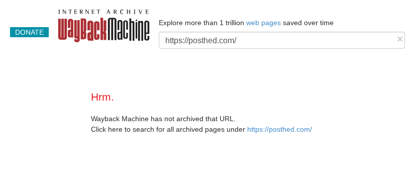 Проблема говорит о двух возможных сценариях: DDOS атаку, удаление проекта из выдачи. Мы больше склоняемся к последнему варианту — исключению образовательной платформы, так как у проекта не остались даже резервные копии. Итак, анализ инструментом Web Archive показал, что онлайн-школа Megaflexlex Systems осталась абсолютно без ничего: https:// webarchive org/web/20250000000000*/https:// posthed com. Следовательно, проект полностью удален из сети.