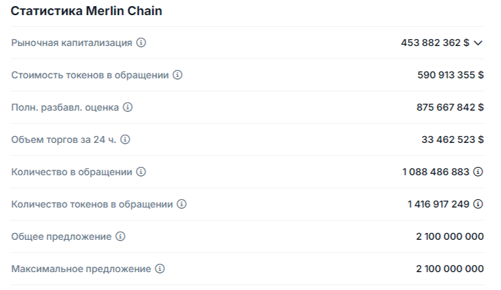 Merl Coin – это токен, который использует сеть Merlin Chain. Данная сеть является вторым уровнем над Bitcoin, которая позволяет пользователям между собой передавать активы без ущерба для безопасности и масштабируемости.