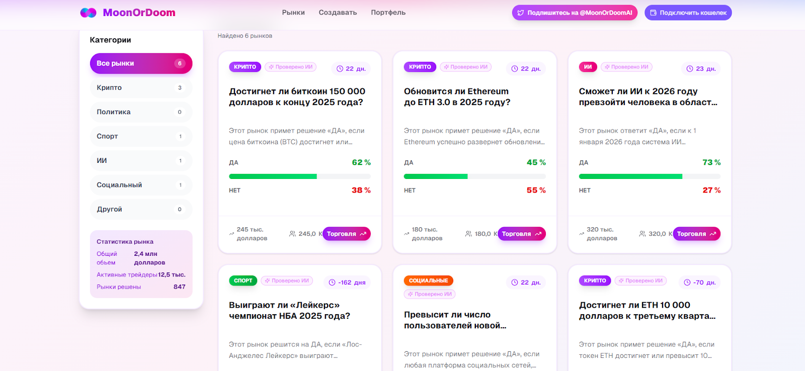 Moonordoom — это платформа с прогнозами для трейдеров, где якобы используются различные инструменты от AI аналитики до автоматизированного отслеживания параметров рынка. Команда предлагает подключить ваш крипто кошелек к платформе и торговать с использованием этих сигналов, однако сайт был зарегистрирован всего 2 месяца назад, а громкие обещания и нереалистичная статистика могут указывать на скам. Стоит ли доверять MoonOrDoom, узнаете в данной статье.