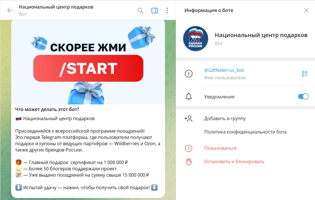 Обзор бота в тг Национальный центр подарков: отзывы пользователей, принцип работы проекта и его анализ