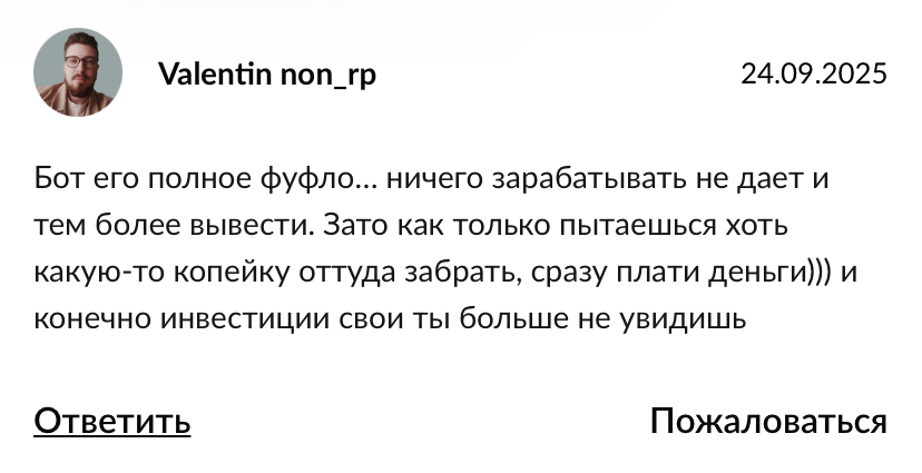 Все они связаны с неэффективностью работы бота, и самого основателя канала.