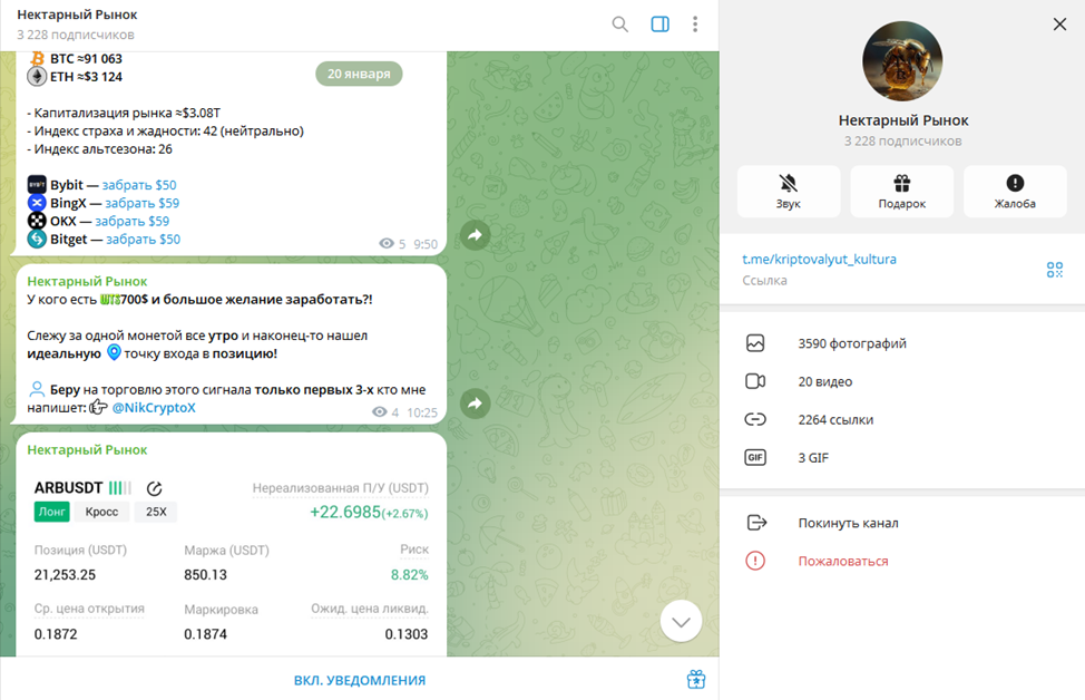 «Нектарный Рынок» — криптовалютный телеграмм-канал, ориентированный на начинающих трейдеров. Его автор предлагает собственную оценку рыночным трендам, а также приглашает к взаимовыгодному сотрудничеству. Из обзора вы узнаете, способен ли аналитик дать эксклюзивные знания, а главное — обеспечить стабильный рост депозита.