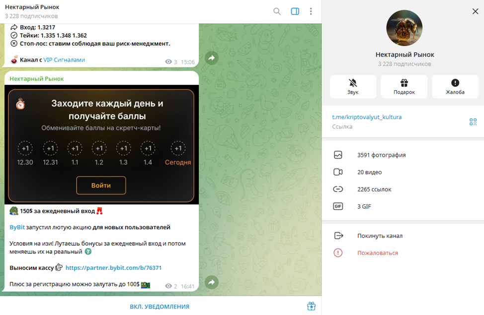 Рекламу этих и других скам-групп регулярно публикуют в ТГК «Нектарный Рынок».