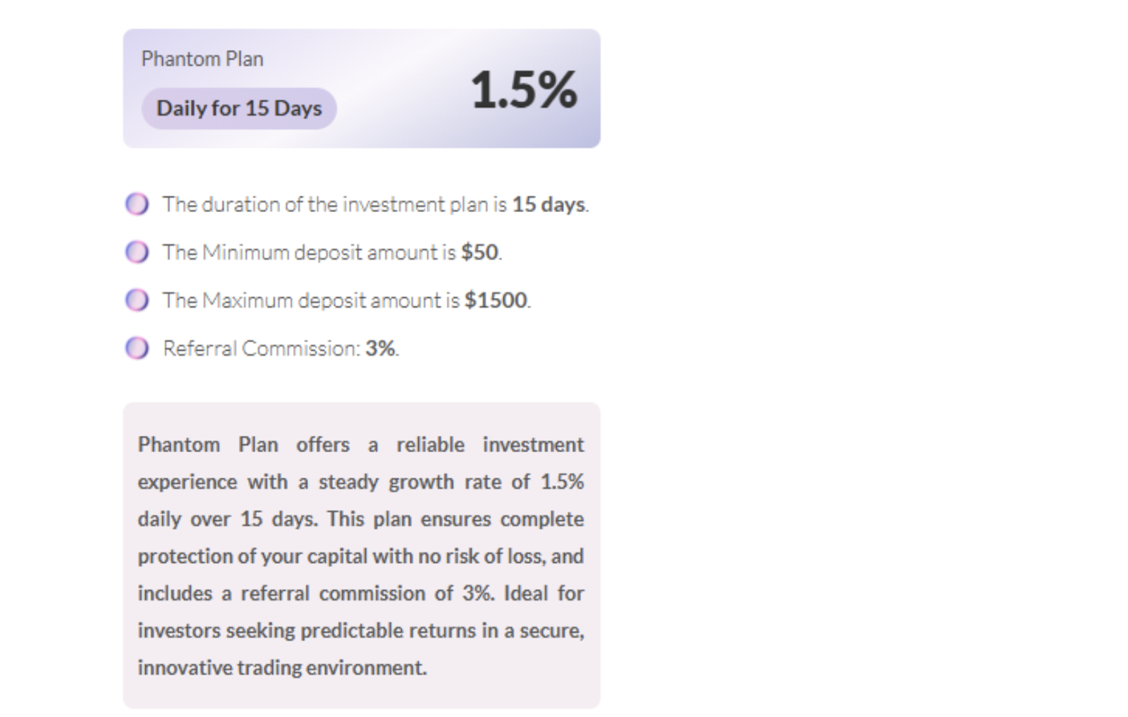 Рассчитывать на то, что создатели проекта раскроют все тонкости своей работы, не приходится. Вместо четкого объяснения они сыплют броскими слоганами — то расскажут про «сверхэффективные стратегии», то про «персональное сопровождение сделок». Но самое подозрительное — полная неясность с комиссиями. Нигде не указано, сколько и за что проект берет денег. Вам предлагают вложить средства, но при этом скрывают, как именно зарабатывают сами.
