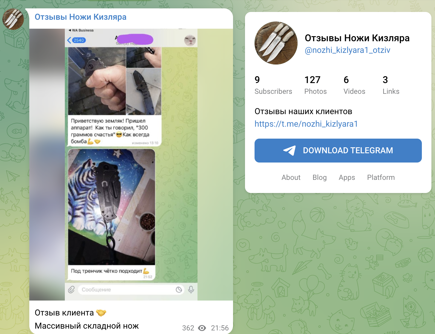 Обзор телеграм-канала Ножи Кизляра: отзывы подписчиков, честно ли работает магазин Razhab nozhi