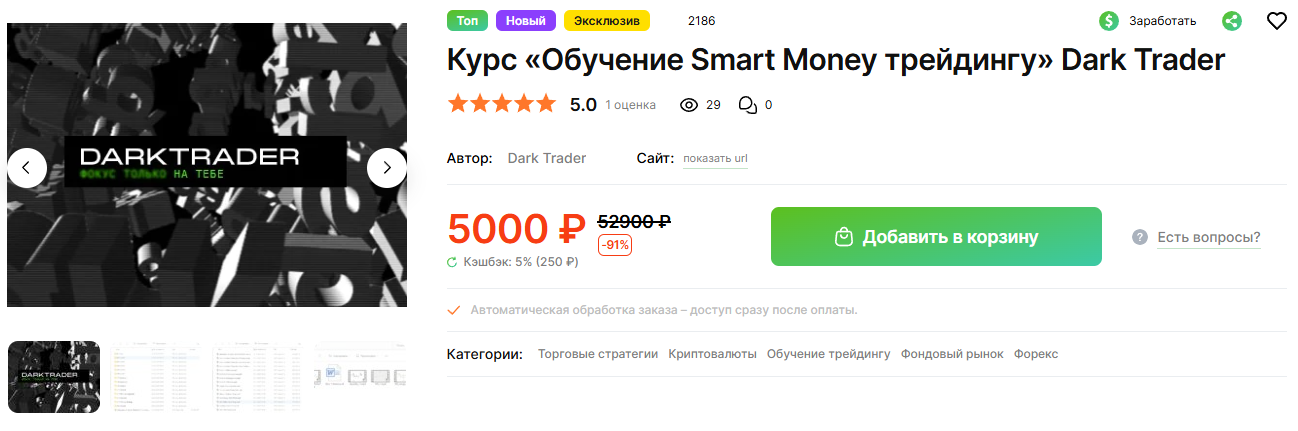 Мы не можем однозначно отрицательно охарактеризовать курс DarkTrader, поскольку полноценных разоблачений на него мы не обнаружили. Также у проекта есть немаленькая аудитория, однако и недостатков здесь немало: