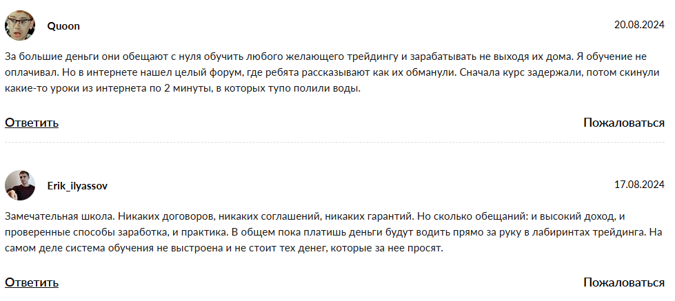 Под обзорами на DarkTrader с YouTube можно найти немало положительных отзывов, в достоверности которых сложно убедиться. В то же время на сторонних площадках видим немало негативных комментариев: некоторые пользователи жалуются на поверхностные материалы и отсутствие полноценной структуры.