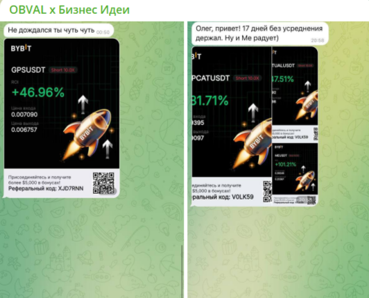 Здесь же публикуются и отзывы клиентов финансового «гуру» вместе со скринами результатов успешной торговли, взятых с биржи ByBit. Люди пишут, что используя сигналы «эксперта», уверенно поднимают баланс депозита.