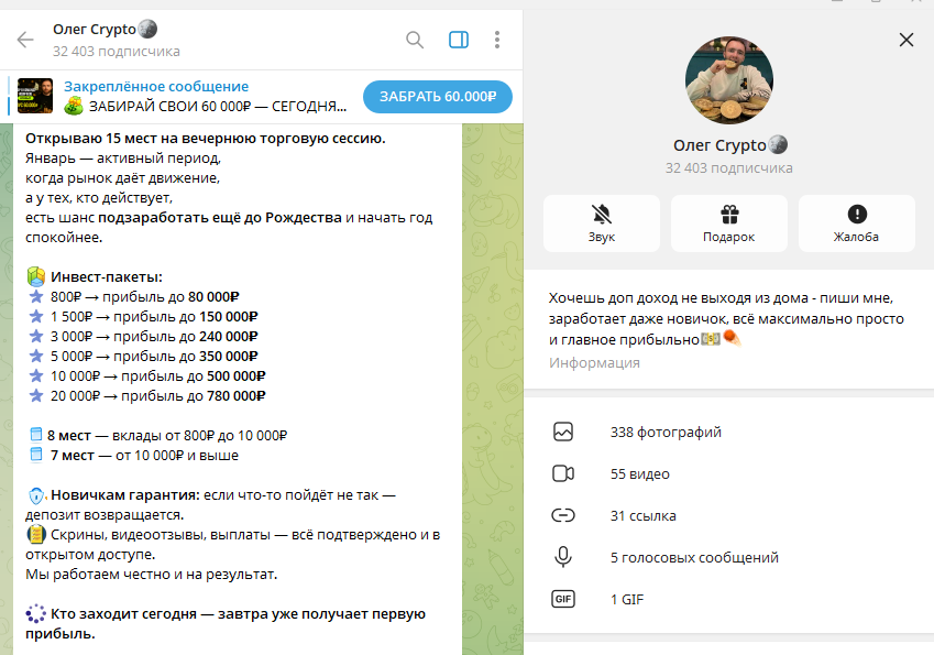 Олег Крипто презентует себя как опытного трейдера и владельца паблика в Telegram, где предлагает фантастические заработки с увеличением стартового депозита в 38-100 раз. Как удается команде Oleg Crypto House получать такие доходы, можно ли доверять подобным обещаниям и что говорят о них отзывы пользователей — мы разберемся в ходе проверки.