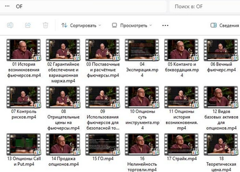 Программа также выглядит странно. Это набор коротких видео с объяснением базовых понятий, вебинар и стрим. Также в курс вошли презентационные материалы и два видео торговле на опционах.