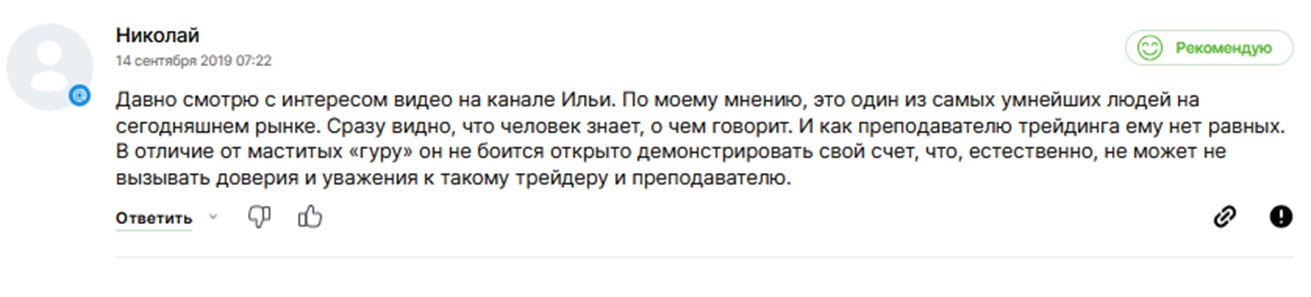 - отзывы об Илье и его деятельности неоднозначные, многие трейдеры негативно отзываются о качестве обучения.