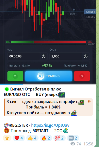 Дополнительных платных услуг Pidec123 не предоставляет. По поводу вступления в его канал с особо выгодными сигналами после регистрации на бирже нужно писать самому трейдеру в Телеграм.
