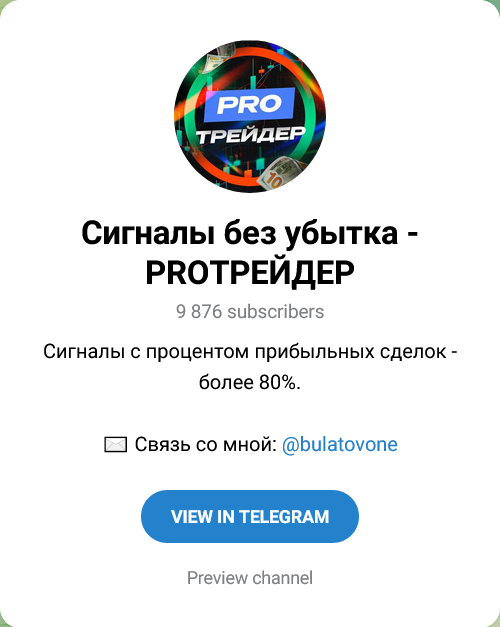 Все о трейдерском ресурсе в Телеграмм «Сигналы без убытка — ProТрейдер»: анализ инвестиционной деятельности финансового эксперта BulatovOne, отзывы клиентов