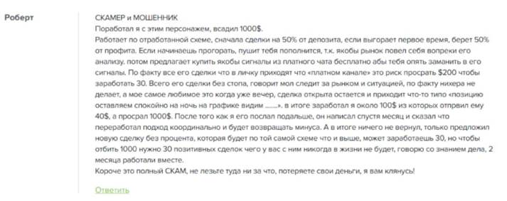 • в Интернете множество отрицательных комментариев о работе трейдера.