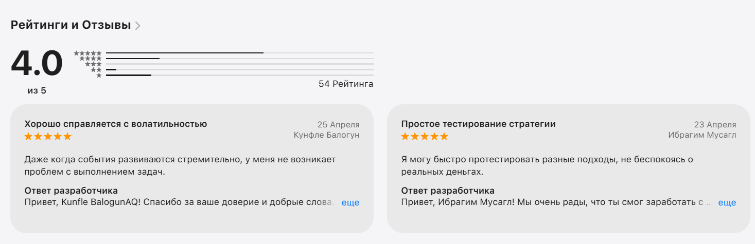 На более чем 1 млн. скачиваний приложения на Google play отклики пользователей отсутствуют. На портале App Store несколько юзеров оставили положительные мнения. При этом из них несколько хвалебных шаблонных комментариев опубликованы с разницей в два дня. Есть подозрение на купленные отклики.