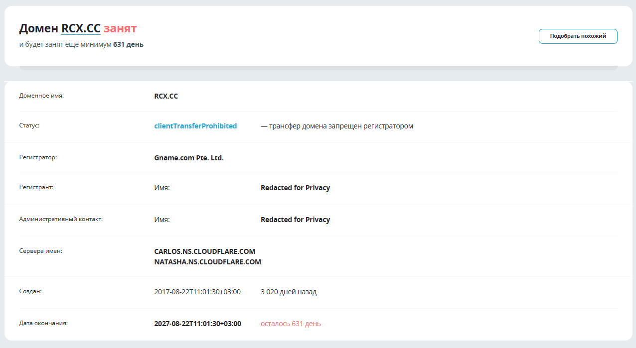 У Rcx сс низкий индикатор доверия в рамках ресурсов для проверки сайтов, отмечается недостаточный поток трафика, а также сокрытие информации от пользователей.