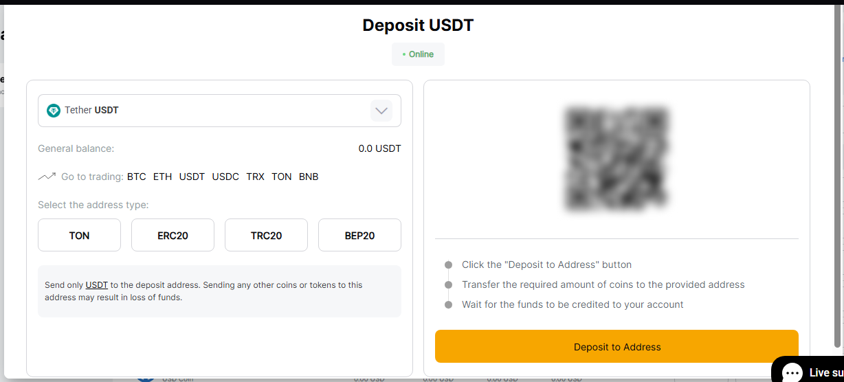 Учетная запись создается просто: нужно указать электронную почту и пароль. При этом верификация отсутствует, что очень странно и вызывает подозрение. Пополнить счет можно только в криптовалюте, для этого доступно огромное количество монет: от USDT и BTC до мемкоинов. Вывод тоже разрешен исключительно в крипте. Мы не нашли никакой информации о минимальных суммах транзакций и комиссиях. Скорее всего, трейдеров ждут скрытые платежи.