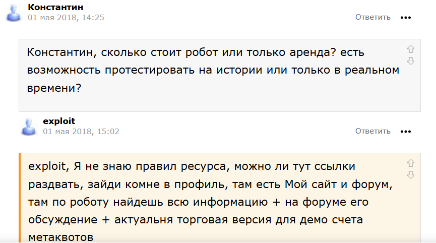 Программа для трейдеров «Саурон скальпинг» отзывы получила по большей части с вопросами от трейдеров и объяснениями разработчиков. Команда отвечает интересующимся. Некоторые люди пишут о тестах бота, но конкретных результатов никто не предоставил. Обсуждение проходит положительно-нейтрально. Негативных высказываний и обвинений в мошенничестве не обнаружено.