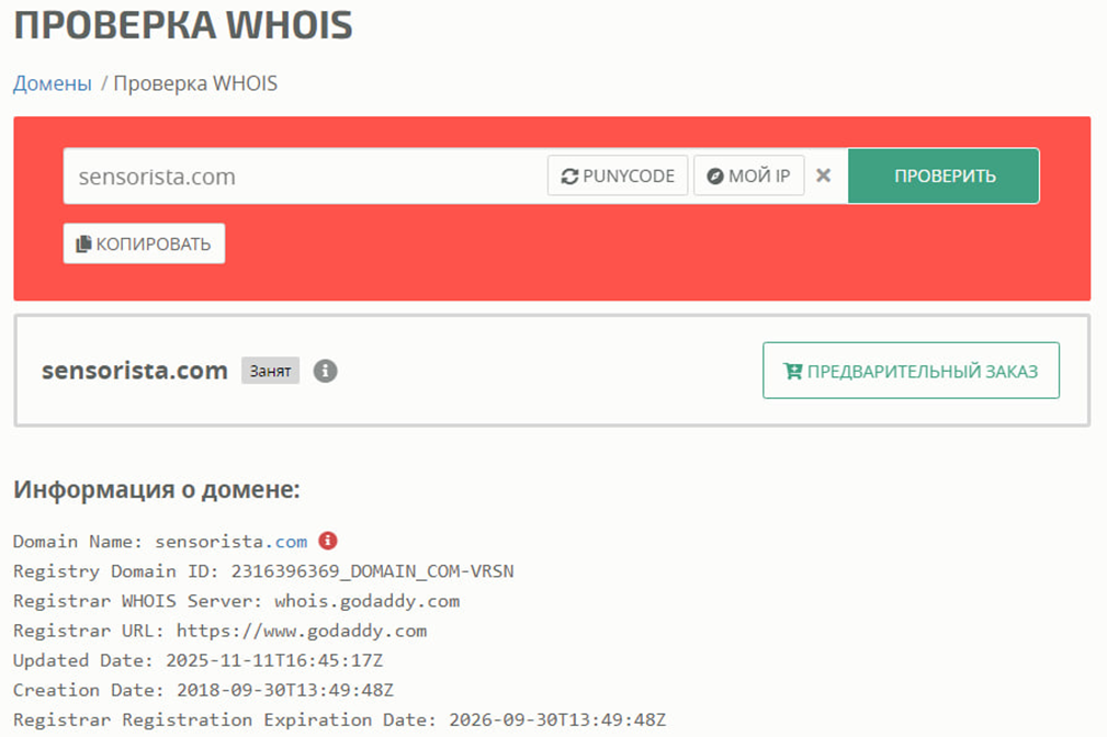 Домен Sensorista был зарегистрирован в 2018 году, но в ноябре 2025 года владельцы срочно сменили название. Интерфейс сайта они не поменяли. Скорее всего, это финансовая пирамида. Про нее стали писать множество негативных обзоров и отзывов, и создатели решили просто поменять название. Сам домен никак не поменялся. К тому же, уже в сентябре 2026 года адрес будет ликвидирован. Разработчики не сообщают об этом и не решают проблему. Если это мошенники, то они явно считают, что это им на руку. Так они смогут поменять название и домен полностью, чтобы избежать раскрытия их деятельности. А данные пользователей на нынешнем адресе могут быть легко украдены.