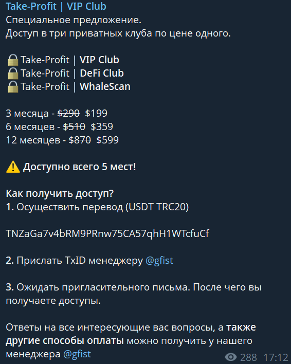 ТГ-канал Take Profit Club не внушает доверия.